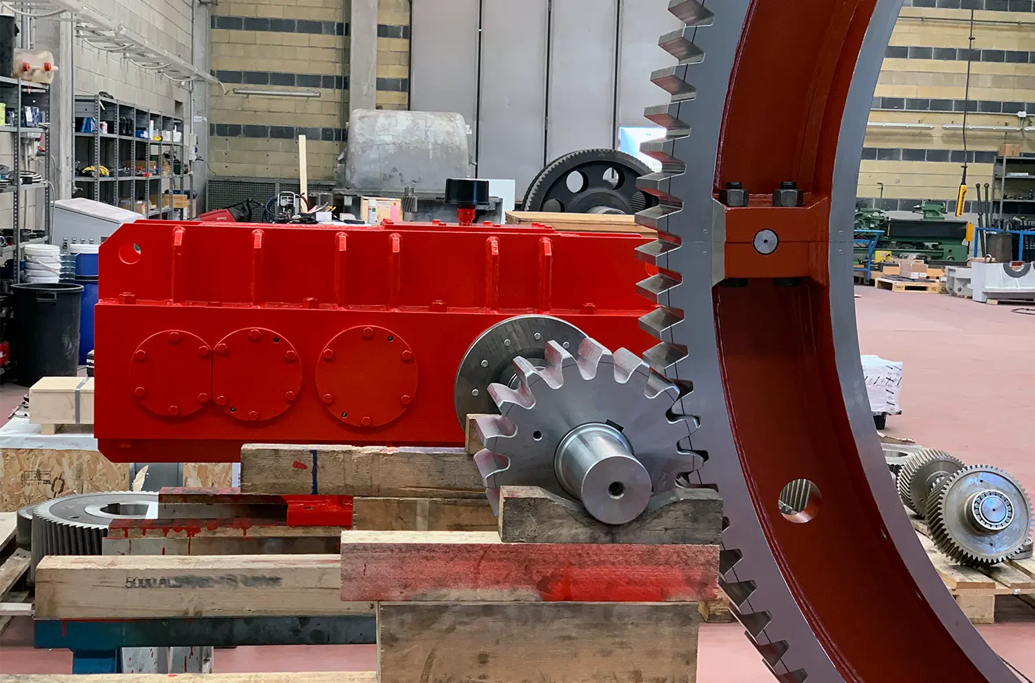 To solve these problems and ensure equipment and production reliability, MGS Gears recommended upgrading and improving all transmission components. We manufactured a new gearbox with an increased service factor over the original, a new pinion and a new girth gear with upgraded materials, and an increased service factor (with hardness characteristics exceeding 280 Brinell for the pinion and 250 Brinell for the girth gear.) As of the date of publication of this note, and as seen in the photographs, we have been manufacturing work has been completed. The best time to proceed with the installation is already being studied and planned with the customer.